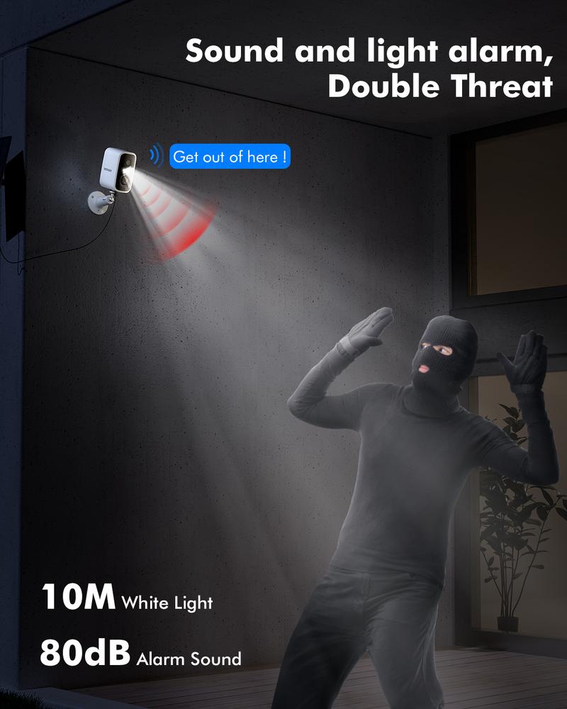 Battery Rechargeable Security Camera Wireless Indoor/Outdoor 2.4Ghz Wifi , 2K Color Night Vision, Automatic Alarm, AI Detection